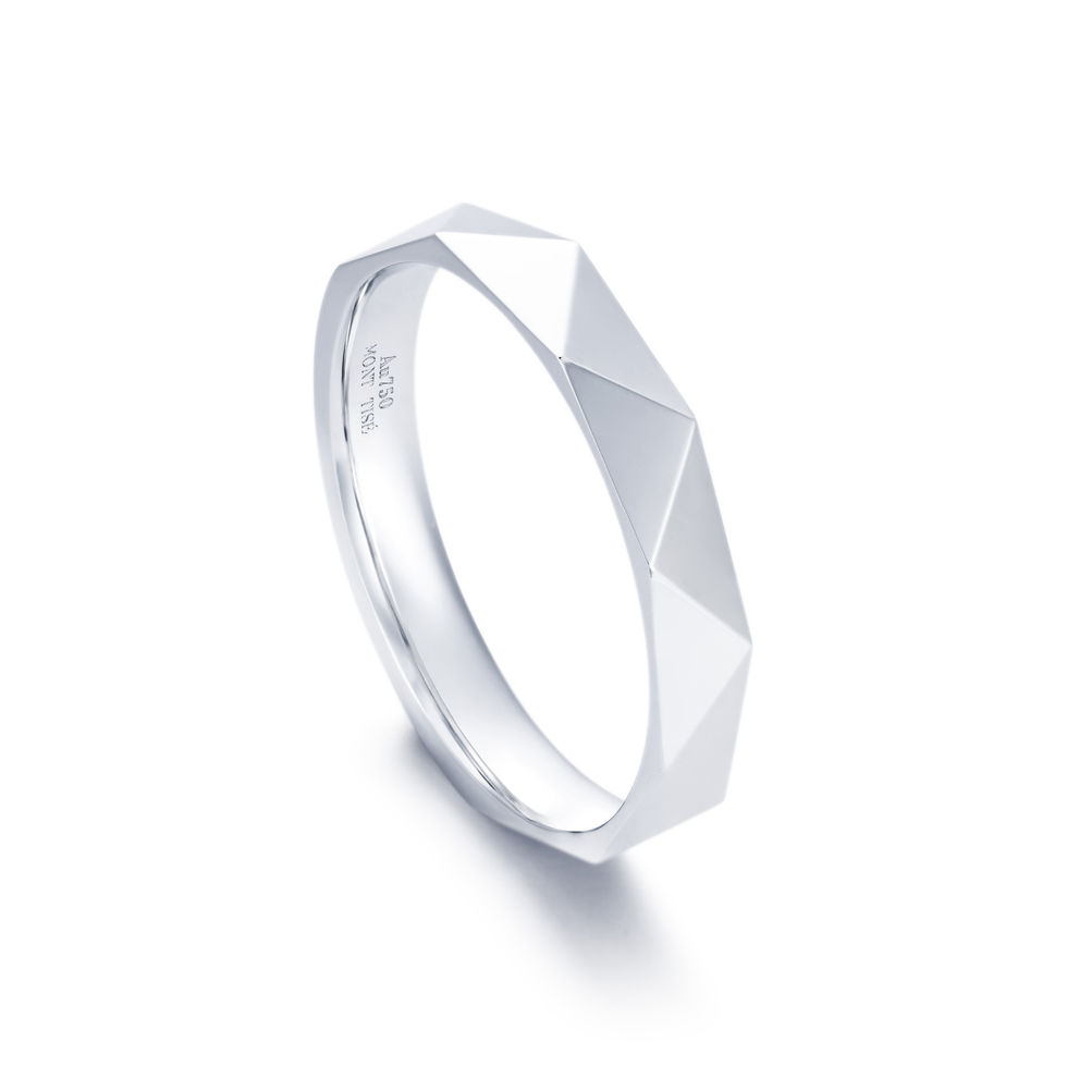 男士鑽戒 · 結婚鑽戒 | 簡約時尚幾何切割面男戒| 18K白金 | PT950鉑金