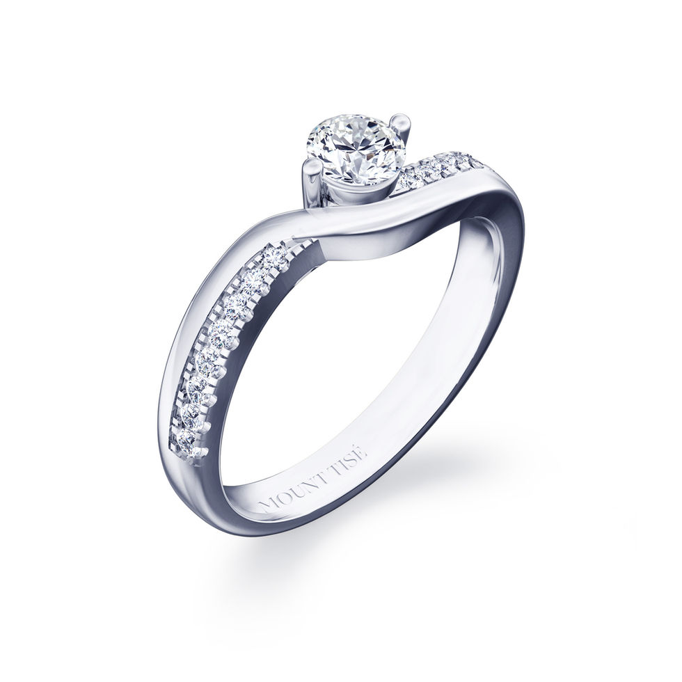 Majestueuse系列 | 波浪碎鑽戒臂圓形求婚鑽戒 | 18K白金 | PT950鉑金